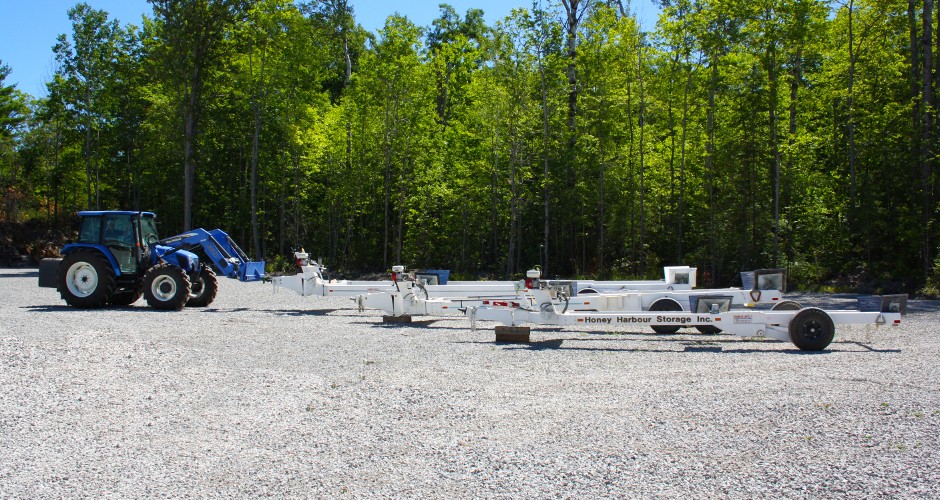 Honey Harbour Storage Inc. uses a variety of equipment in the process of hauling, moving, and storing watercraft, snowmobiles, and other storage items, including and not limited to four, seven, and 15-ton hydraulic trailers; load lifters, tractors, all-terrain vehicles, and other various equipment.